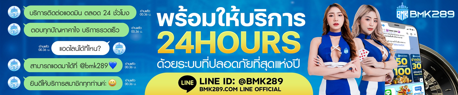 ที่ bmk289 เรายังมีทีมซัพพอร์ตคอยให้ความช่วยเหลือตลอด 24 ชั่วโมง หากคุณพบปัญหาหรือมีข้อสงสัยเกี่ยวกับการฝาก-ถอน สามารถติดต่อเราได้ทันทีผ่านช่องทางไลน์หรือเว็บแชท ทีมงานของเราพร้อมให้บริการด้วยความเป็นมิตรและมืออาชีพ